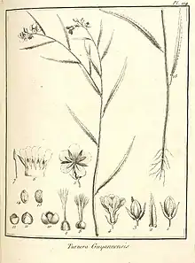En 1775, le botaniste Aublet propose le protologue suivant pour Turnera guianensis Aubl. :