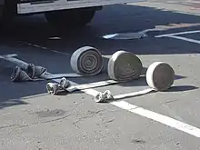 Les tuyaux de grand diamètre, 70 mm en France, qui servent à relier la division (alimentant plusieurs lances) au fourgon, sont conditionnés sur un dévidoir roulant (monté sur roues) ; la division déjà reliée au tuyau. Le tuyau est simplement roulé autour du tambour.