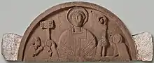 Le tympan serait l'œuvre d'un moine de l'abbaye et sculpté entre 1122 et 1132 dans un morceau de grès rouge ayant probablement servi auparavant de pierre tombale.