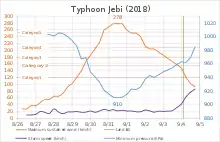 - (en) Digital Typhoon: Typhoon 201821 (JEBI) - General Information (Pressure and Track Charts)