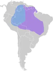 Le tyran à gorge blanche est un migrateur intracontinental. Il est résident de l'Est du bassin amazonien. Son aire de répartition s'étend vers l'est jusqu'au Cerrado (où il est un migrateur de passage dans la partie nord) et vers le nord jusqu'au bouclier guyanais, à l'exception de la région côtière (à l'est vers l'île de Marajó).