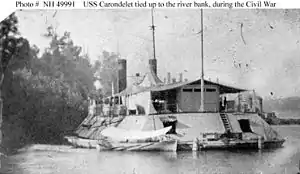 L'USS Carondelet, une canonnière fluviale, a été construite en 1861 par James Eads and Co, à Saint-Louis, dans le Missouri, dans le chantier naval Union Iron Works, à Carondelet, dans le Missouri, sous contrat avec le Département de la Guerre des États-Unis. Le Carondelet est mis en service le 15 janvier 1862 à Cairo dans l'Illinois, sous le commandement du Commander (commandant) de la marine américaine Henry A. Walke, et est rattaché à la flottille de canonnières de l'ouest (Western Gunboat Flotilla) de l'armée[[2] commandée par l'officier de pavillon de la marine américaine Andrew Hull Foote.
