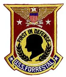 Il est baptisé en hommage à l'ancien secrétaire à la Défense des États-Unis, James Forrestal (1892-1949), y compris son surnom, « First In Defense », affectueusement abrégé en « F.I.D. », par référence au fait qu'il est le premier à occuper ce nouveau poste. C'est pourquoi la mention « First In Defense » figure sur ses insignes et écussons.