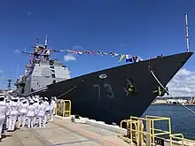 | Armement | 2 × VLS Mk 41 à 127 × silos pour missiles SM-3, ASROC et Tomahawk 2 × 4 lanceurs pour missiles Harpoon 2 × systèmes de défense anti-missile antinavire Phalanx CIWS 2 × 3 tubes lance-torpilles Mk 32 SVTT 2 × canons Mk.45 de 127 mm/54 Cal. 2 × canons M242 Bushmaster de 25 mm 2 × mitrailleuses de 12,7 mm |