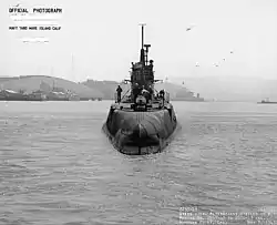 Le Sturgeon au large du chantier de Mare Island le . | |