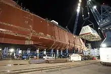 En , le calendrier de construction de General Dynamics prévoyait de livrer le navire en , avec comme cible pour une mise en capacité opérationnelle par l'US Navy[12]. Cependant, en 2012, la livraison du navire est retardée à l'exercice 2014[13]. La première section du navire est posée sur la cale de halage à Bath Iron Works, le [13]. La cérémonie de baptême était prévue pour le , mais elle a été annulée en raison de l'arrêt des activités gouvernementales fédérales de 2013 aux États-Unis[14]. Le navire est lancé du chantier naval de Bath le 28 octobre 2013[15],[16],[17].