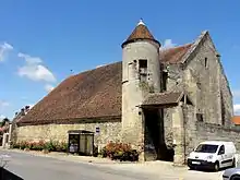 - L'ancienne grange dîmière, au nord de l'église (inscrite monument historique par arrêté du [54]) : Elle date du XIVe siècle et appartenait à l'abbaye de Saint-Denis. L'angle sud-ouest est flanqué d'une petite tour de trois étages sur plan rond, qui devait servir de poste de garde, puisqu'il n'y a pas d'intercirculation entre les combles de la grange et la tour. Les restes d'une échauguette en encorbellement sont visibles sur le mur-pignon nord. La forme dissymétrique des deux murs-pignons donne à penser que la grange devait posséder un vaisseau central et un collatéral, côté rue. Les murs sont épaulés par de puissants contreforts distribués irrégulièrement : deux au sud, et quatre au nord. La porte de la grange donne sur la cour de ferme. Elle est surmontée d'une statue en pierre de saint Denis céphalophore. Tout l'intérieur de la grange ne forme aujourd'hui plus qu'un volume unique, et il n'y a plus de plafond. La charpente est donc apparente. Contrairement à ce que suggèrent les contreforts, rien n'indique que la grange aurait été voûtée d'ogives.