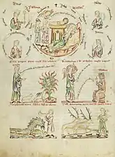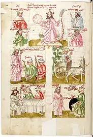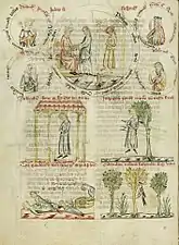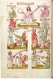 - Les Rota in medio rotae sont des manuscrits qui suivent chronologiquement les Pictor in carmine et précèdent les Biblia pauperum ; voir par exemple (de) Frank Büttner et Andrea Gottdang, Einführung in die Ikonographie : Wege zur Deutung von Bildinhalten, Munich, C. H. Beck, , 304 p. (ISBN 978-3-406-53579-6, lire en ligne), p. 62.