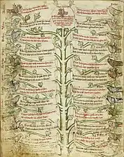 Catéchisme en images : Dix Commandements, vertus et vices, divers arbres (arbre des oiseaux, arbre des vices)