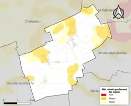 Le retrait-gonflement des sols argileux est susceptible d'engendrer des dommages importants aux bâtiments en cas d’alternance de périodes de sécheresse et de pluie. 19,7 % de la superficie communale est en aléa moyen ou fort (52,8 % au niveau départemental et 48,5 % au niveau national). Sur les 174 bâtiments dénombrés sur la commune en 2019, 22 sont en aléa moyen ou fort, soit 13 %, à comparer aux 70 % au niveau départemental et 54 % au niveau national. Une cartographie de l'exposition du territoire national au retrait gonflement des sols argileux est disponible sur le site du BRGM[18],[Carte 2].