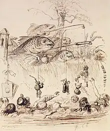 De 1830 à 1835, Grandville est, avec 122 lithographies, le contributeur le plus prolifique de La Caricature[14] et devient le plus célèbre caricaturiste de presse en France[15],[N 1]. Après la promulgation de la loi sur la presse du 9 septembre 1835, pour des raisons politiques, familiales et professionnelles[17],[15], il se convertit à l'illustration de livres.