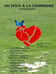 - 2019 : Un mois à la campagne, mis en scène par Bernard Lefebvre, avec Hélène Robin, Bernard Lefebvre et Olivier Bruaux au Théâtre du Nord-Ouest[4] et au festival Théâtres de Bourbon 2020[5]