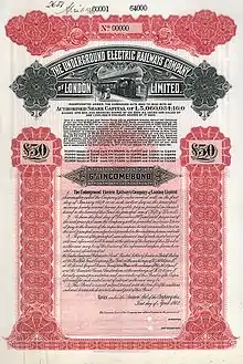 Spécimen d’une obligation de l'Underground Electric Railways Company of London Ltd du 1er avril 1912.