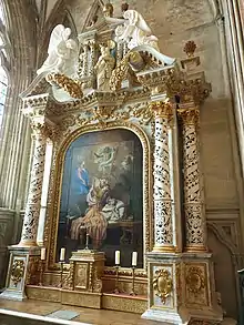 Une Annonciation et une Crucifixion est le retable de l'autel de la chapelle Saint-Martin-des-Vicaires, aussi appelée chapelle Notre-Dame, une des chapelles latérales de la cathédrale de Bayeux en Normandie. Il a été édifié principalement dans le second tiers du XVIIe siècle[1], avec des modifications au XVIIIe et XIXe[2]. Il est constitué d'un tableau représentant un mourant soutenu par son ange gardien et la Vierge Marie, intercédant auprès du Christ ressuscité. Le tableau est encadré par une composition en bois peint et doré de quatre colonnes corinthiennes ajourées ornées de spirale, de rubans et de pampres avec une corniche à ressauts et au sommet, une niche avec fronton brisé abritant une Vierge royale[2]. On trouve un ange agenouillé de chaque côté sur un départ de fronton arrondi[2]. Des guirlandes de fruits attachées à la base de la niche partent de ces départs des frontons[2].