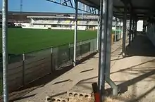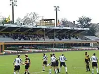 Vue de la tribune assise en 2001 lors du tout dernier match disputé par l'URN à "Soulier" (contre l'AS Eupen)