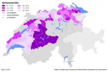 L'UDF est implantée dans la plupart des cantons suisses, à l'exception de la Suisse centrale et des cantons de tradition catholique. D'ailleurs, le parti obtient ses meilleurs résultats uniquement dans les cantons protestants[7] et notamment dans l'Oberland bernois ainsi que dans des régions conservatrices protestantes. Son électorat est proche des milieux évangélistes fondamentalistes dont la population est membre des « Églises libres » qui se différencient du protestantisme dit officiel (Réforme)[7].