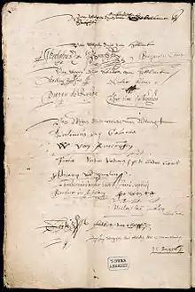 Le , le traité est signé par les représentants du comté de Hollande, du comté de Zélande, de la seigneurie de Groningue (en), du comté de Flandre, de la seigneurie d'Utrecht, du duché de Brabant, des villes de Tournai et de Valenciennes, toutes favorables à la liberté religieuse.