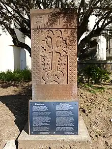 Khatchkar dressé devant le temple de l'église évangélique arménienne à Montélimar.