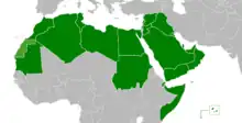 En vert, les pays membres de l'Union des comités nationaux olympiques arabes.