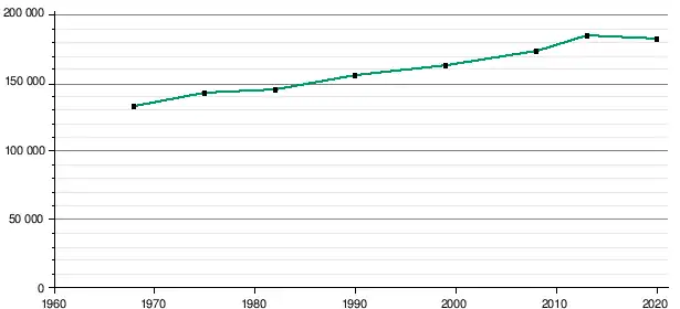 L'évolution démographique ci-dessous concerne l'unité urbaine selon le périmètre de 2020.