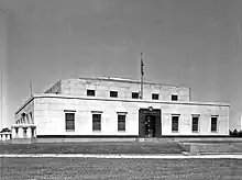 Le bâtiment mesure 32 m par 37 m et mesure 13 m au-dessus du niveau du sol. Les matériaux utilisés pour construire le bâtiment comprennent 470 m3 de granit (extrait du complexe de carrières North Carolina Granite Corporation[35] ), 3 200 m3 de béton, 680 tonnes d'acier renforcé et 610 tonnes d'acier de construction. Le mur extérieur est en béton revêtu de granit. À chaque coin de la structure se trouvent quatre boîtes de garde. Des guérites sont situées à la porte d'entrée. Les mots "United States Depository" sont inscrits sur l'entrée principale en marbre. Au-dessus de l'inscription se trouve le sceau du département du Trésor, en or. Les bureaux de l' officier responsable et du capitaine de la garde s'ouvrent dans le hall d'entrée. À l'arrière du bâtiment se trouve une autre entrée utilisée pour recevoir les lingots et les fournitures[4].