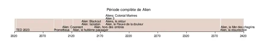 | 2089-2093 | Prometheus | Long métrage de Ridley Scott, premier préquelle de la saga | ||