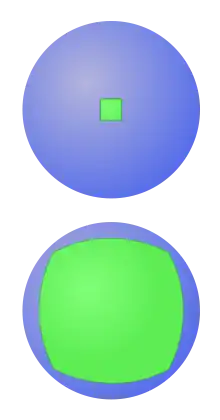 De façon similaire, notre propre espace (courbe, homogène, à trois dimensions) peut être considéré comme l'hypersurface à trois dimensions d'une boule à quatre dimensions et de rayon a. Une telle boule est l'ensemble des points solutions dont les coordonnées sont liées par l'équation :