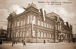 Le 30 novembre 1908, le conseil des ministres soumet un projet de loi devant la Douma d'État sur la fondation de l'université de Saratov, ce qui est approuvé le 8 mai 1909, confirmé en juin suivant par le conseil d'État et promulgué par la signature de Nicolas II, en croisière sur son yacht Standard[3]. Le nouvel établissement prend naissance le 6 décembre 1909 sous le nom d'université impériale de Saratov.