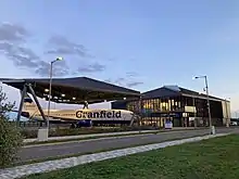 Cranfield est la seule université britannique à posséder son propre aéroport, situé sur le campus lui-même. Disposant d'une piste de 1 800 mètres de long, il est principalement utilisé par les chercheurs de l'université et pour les cours d'aéronautique.