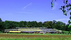 La grange de Dorigny (à droite) est le théâtre de l'université de Lausanne et la ferme de Dorigny (au second plan), qui abrite le siège de la fondation Jean-Monnet pour l'Europe.