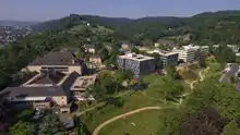 Outre un concept de construction écologique, le campus dispose d'un approvisionnement en énergie et en chaleur neutre en CO2 ainsi que d'une technique de bâtiment et d'installation moderne. Fondé en 1996, il est un ancien hôpital de réserve des forces armées américaines[10].