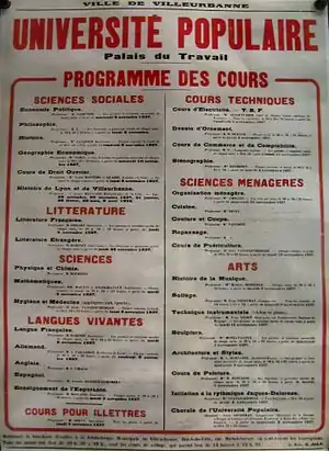 C'est ainsi que sont nées les premières universités populaires françaises. Vers 1882 le Cercle démocratique pour l’instruction et l’éducation du peuple est créé par Victor Bonhommet au Mans[2] et en 1898 La Coopération des Idées[3], à l'initiative de Georges Deherme et d'ouvriers de Montreuil-sous-Bois, rue du Faubourg-Saint-Antoine à Paris[4]. En 1899, Deherme lance un appel à fonder une « Société des universités populaires ». Celles-ci sont au nombre de 124 en 1901.