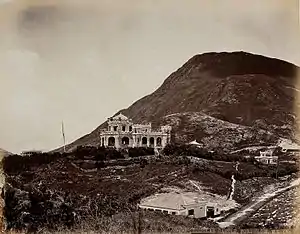Le château lui-même est créé par Douglas Lapraik (en), un commerçant écossais ayant fait fortune dans la construction navale et la location de quais[3]. Le talent de Douglas pour les opportunités d'affaires fait bientôt de lui l'une des personnes les plus riches de Hong Kong à son époque et l'incite à améliorer ses conditions de vie conformément aux normes d'un taï-pan (en) de Hong Kong. En 1860, Douglas entend parler du projet du gouvernement de construire un réservoir d'eau et un parc dans la partie sud-ouest de l'île dans la vallée autour de Pok Fu Lam (zh). Le réservoir est une solution au problème croissant de l'approvisionnement en eau potable de Hong Kong. Pok Fu Lam Road (en) se développe rapidement pour devenir la connexion du district de Western au petit port de Hong Kong d'Aberdeen, où Douglas prévoit d'installer ses quais. En 1861, il achète la colline de 900 m², qui comprend l'emplacement de l'actuel University Hall, le mont High West (en) et des courts de tennis. De 1861 à 1867, Douglas fait construire le château de Douglas, pour surveiller sa flotte entrant et sortant du port. La superficie brute du château est d'environ 185m², en une structure en un étage, située à l'actuel Warden Flat. En 1866, Douglas retourne en Grande-Bretagne et le château est hérité par son neveu, John Steward Lapraik.