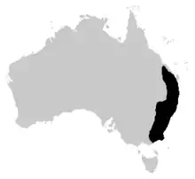 Cette espèce est endémique de l'Est de l'Australie. Elle se rencontre dans le sud-est du Queensland, dans l'est du Victoria et dans l'est de la Nouvelle-Galles du Sud[1],[2].
