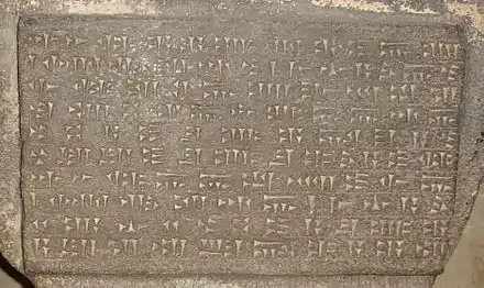 L'urartéen était une langue ergative ainsi qu'une langue agglutinante, qui n'appartenait ni à la famille des langues sémitiques, ni à la famille des langues indo-européennes, mais à la famille des langues hourro-urartéennes (dont le seul autre membre connu est le hourrite)[6]. Il survécut dans de nombreuses inscriptions retrouvées dans la zone du royaume d'Urartu, écrites dans l'écriture cunéiforme assyrienne[7].
