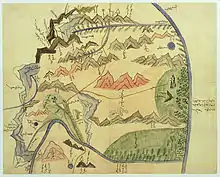 Une carte de la région du cap Zutgant Duni à l'époque mandchoue de l'Altaï Uriankhai en Mongolie occidentale.