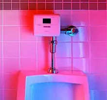 Pour aider à réduire la consommation d'eau lorsque les toilettes publiques sont fermées, certaines toilettes publiques avec chasse d'eau programmée utilisent une vanne d'eau électrique connectée à au réservoir, et se remplira uniquement si un détecteur infrarouge détecte l'utilisation des urinoirs.