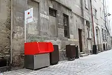 Le réservoir de l'uritrottoir est surmonté d'une jardinière parfois fleurie, pour faciliter son intégration dans l'espace public, pour tenter de dissimuler, par la végétation, autant que possible.