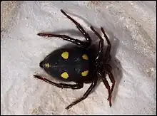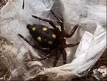 C’est dans la toile que sont pondus les œufs gardés par la femelle. Les petits se dispersent par la technique du ballooning[8].