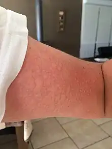L’urticaire au froid, ou allergie au froid, est une forme d’urticaire physique, relativement rare (comptant pour 2 % à 5 % des urticaires chroniques et 20 % des urticaires physiques)[1], provoquée par l’exposition au froid ou par l’abaissement de la température du corps.