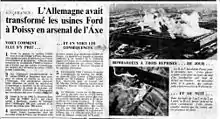 - 1940 : Poissy est occupée le . L’usine Ford-SAF est placée sous l’autorité d’un administrateur allemand en provenance de Ford Cologne. Ford Motor Company occupe une place particulière car elle est engagée des deux côtés du conflit avec une usine à Cologne et une usine à Poissy. General Motors se trouve dans une situation similaire avec sa filiale Opel en Allemagne.