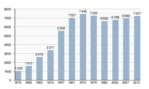 - Source: Registres de la population de la commune d'Aubange consultés en octobre 2012.