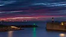 Panorama de Västra hamnen vu depuis Ribersborgsstranden, avec la Turning Torso au centre. | ||