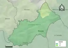 L'occupation des sols de la commune, telle qu'elle ressort de la base de données européenne d’occupation biophysique des sols Corine Land Cover (CLC), est marquée par l'importance des forêts et milieux semi-naturels (89,2 % en 2018), une proportion identique à celle de 1990 (89,3 %). La répartition détaillée en 2018 est la suivante : forêts (64,8 %), milieux à végétation arbustive et/ou herbacée (24,4 %), zones agricoles hétérogènes (10,8 %)[22]. L'évolution de l’occupation des sols de la commune et de ses infrastructures peut être observée sur les différentes représentations cartographiques du territoire : la carte de Cassini (XVIIIe siècle), la carte d'état-major (1820-1866) et les cartes ou photos aériennes de l'IGN pour la période actuelle (1950 à aujourd'hui)[Carte 1].