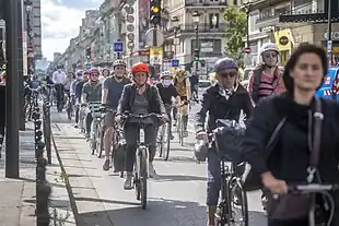 En 1972 a lieu à Paris à la fois la première manifestation à vélo (qui rassemble 25 000 cyclistes), et la création par Jacques Essel du premier mouvement de défense des cyclistes, le MDB, qui milite pour la création d'infrastructures cyclables, et organise à partir de 2007 une grande manifestation annuelle, la Convergence. En 2003 est créé par surcroît le collectif Vélorution, organisateur de masses critiques mensuelles[80].