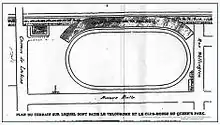 Une gravure publiée dans La Presse du 5 août 1899 (page 1) vient également confirmer la localisation du vélodrome telle que décrite dans La Patrie du 16 février 1898 (page 3)[7]. Cette illustration montre une vue vers le sud : on y aperçoit des bâtiments sur la rue Wellington