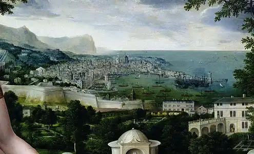 Le tableau représente Vénus, allongée sur un divan, dans un jardin. En arrière-plan du tableau apparaît la ville portuaire italienne de Gênes, et le bâtiment avec son jardin est le Palazzo Doria.