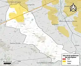 Le retrait-gonflement des sols argileux est susceptible d'engendrer des dommages importants aux bâtiments en cas d’alternance de périodes de sécheresse et de pluie. 13,8 % de la superficie communale est en aléa moyen ou fort (54,2 % au niveau départemental et 48,5 % au niveau national). Sur les 935 bâtiments dénombrés sur la commune en 2019, 231 sont en aléa moyen ou fort, soit 25 %, à comparer aux 57 % au niveau départemental et 54 % au niveau national. Une cartographie de l'exposition du territoire national au retrait gonflement des sols argileux est disponible sur le site du BRGM[13],[Carte 2].