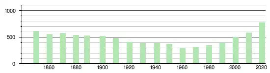La même année, la commune compte 387 hommes pour 387 femmes, soit un taux de 44,7 % d'hommes, inférieur à celui du canton (48,4 %)[47].