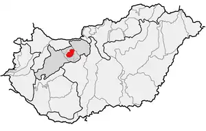 Carte des subdivisions du massif de Transdanubie avec les monts du Vértes vers le centre. | |